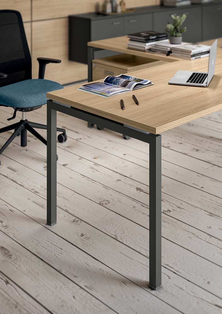 Mesa con tablero de melamina antireflejos de 30mm de espesor.