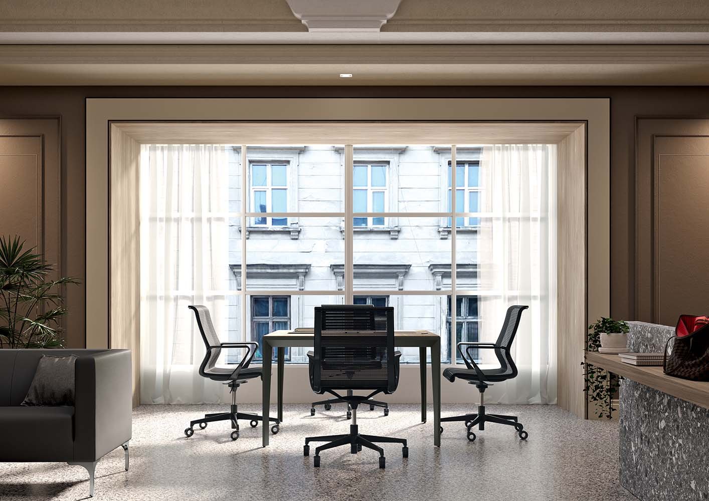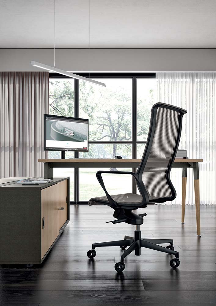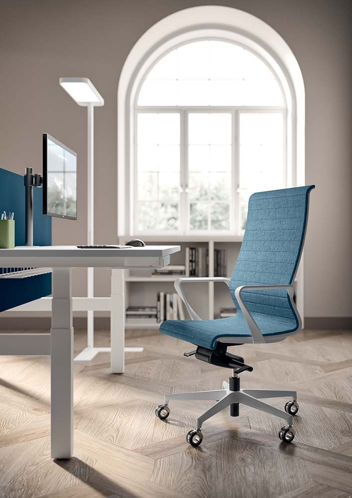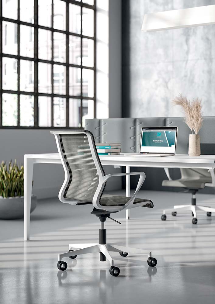 Se puede elegir entre fija o giratoria, respaldo alto o bajo