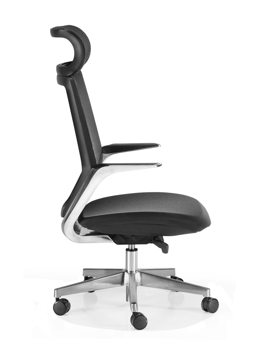 - Asiento ergonómico posformado, tapizado en tela flex color negro y goma espuma de alta densidad con curvatura en la parte delantera.